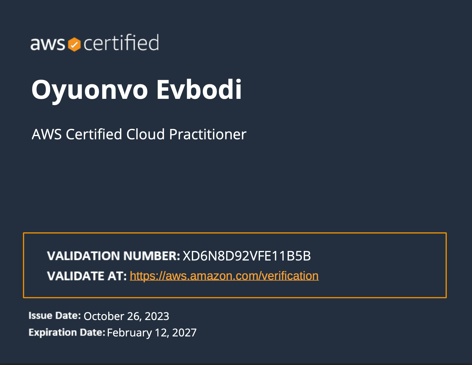 credential number: XD6N8D92VFE11B5B